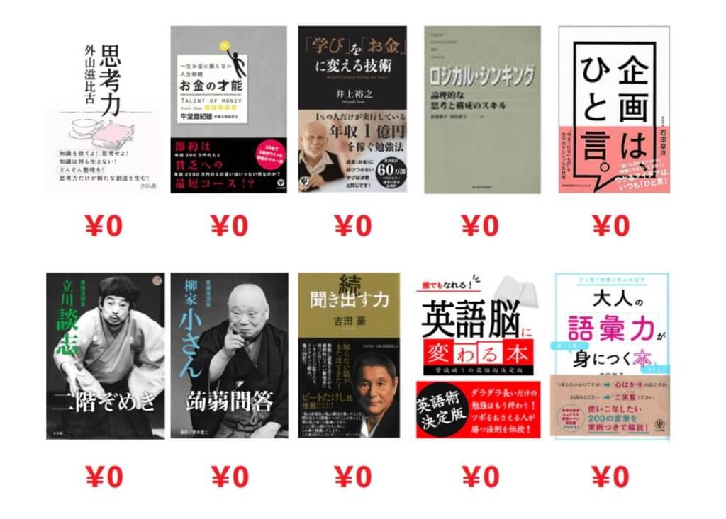 上の画像にある本は聴き放題プランで利用できるほんの一部で、本好きの方であれば確実に楽しめるプランとなっています。