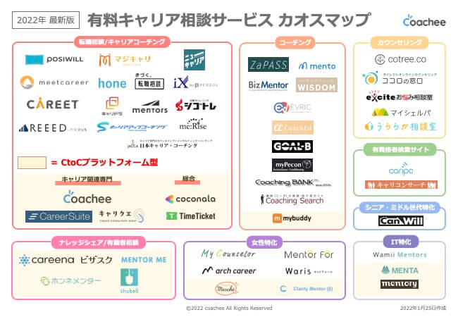 coacheeと他の主要なキャリアコーチングサービスを比較して、 どのサービスが自分に合っているかを判断しましょう。