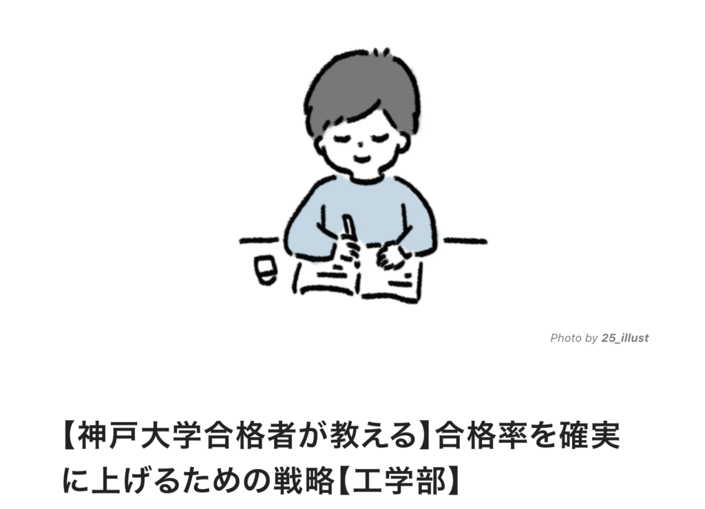 現在、「【神戸大学合格者が教える】合格率を確実に上げるための戦略【工学部】」と言うタイトルで、noteを公開しています。