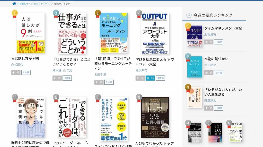 flier(フライヤー)は無料でも少しの要約ページなら見ることが可能です。
