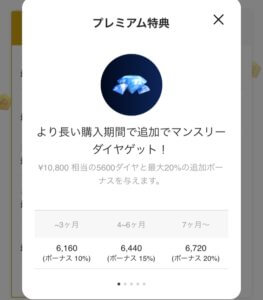 プレミアムに加入することで、毎月ボーナスダイヤやボーナススターを手に入れることができます。