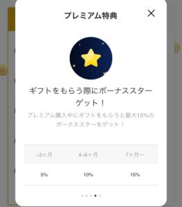 4つ目のプレミアム特典は「ギフトをもらう際にボーナススターをもらえる」というものです。