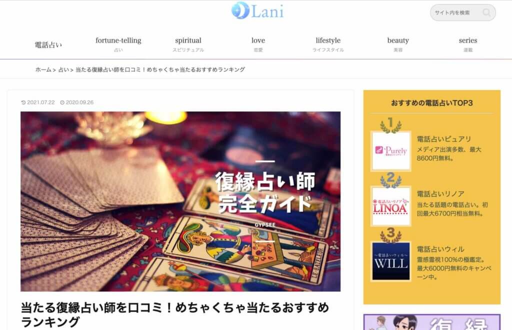 他にも電話占いや前世占いなどの記事が書かれているので、占いが好きな方は見てみてください。