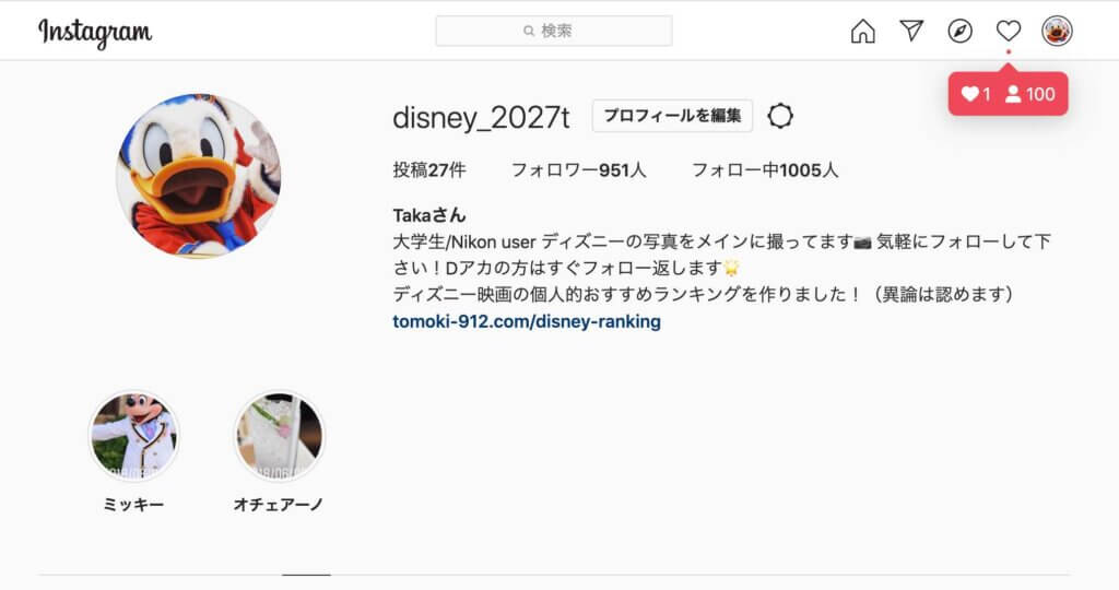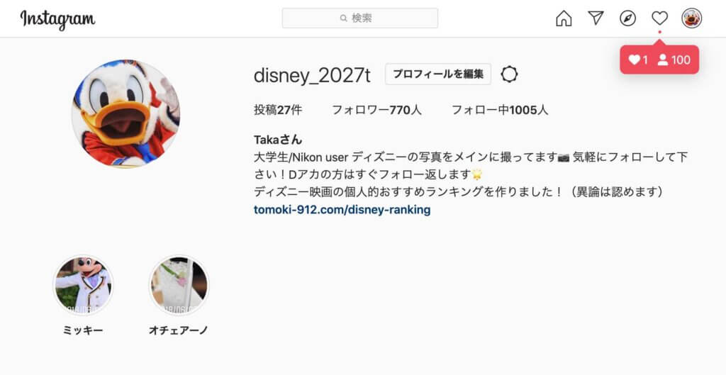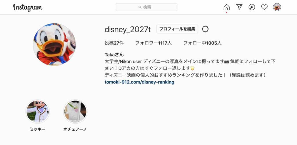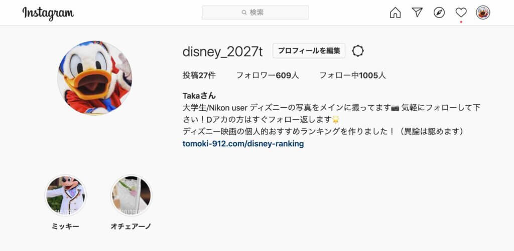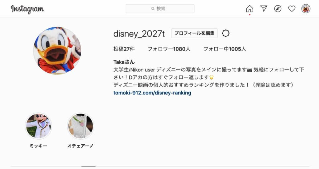 フォロワーを増やすために使用したアカウントは、ディズニーリゾートで撮影した写真を投稿する専門のアカウントにしました。