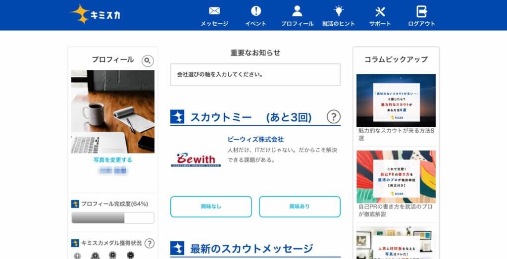 キミスカにぼちぼちスカウトがきててありがたかった#23卒#就活#23卒とつながりたい— ぽん就活生@23卒 (@0JM9FWQpWdlhyIO) October 29, 2021