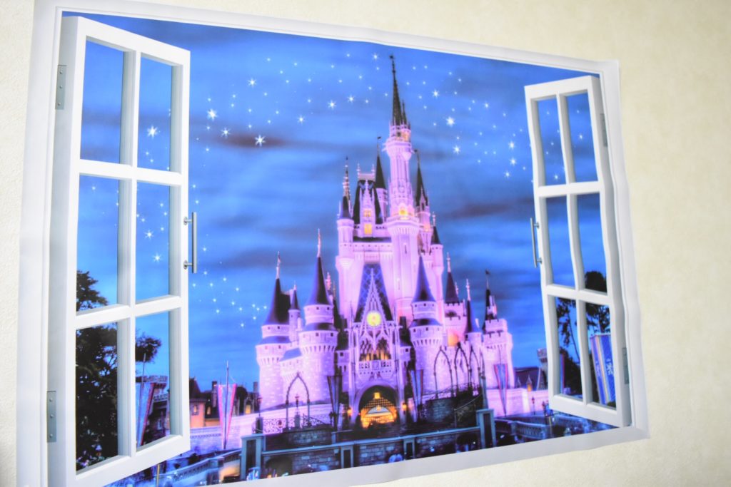 いつでも部屋の中からシンデレラ城を臨むことができます。