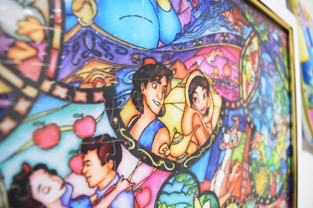 様々なディズニー映画のキャラクターがこの1つのパズルに集結していて、色合いも鮮やかで綺麗なのでインテリアとしても楽しめます。