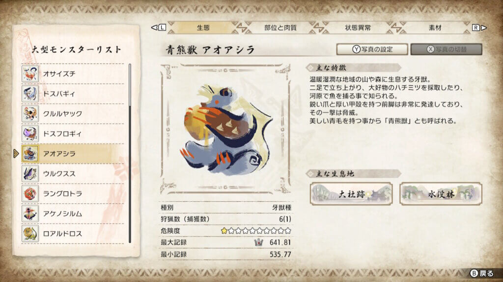 ロアルドロスとかウルクスス、ラングロトラ、アオアシラなど序盤から知っているモンスターばかり出てきます。