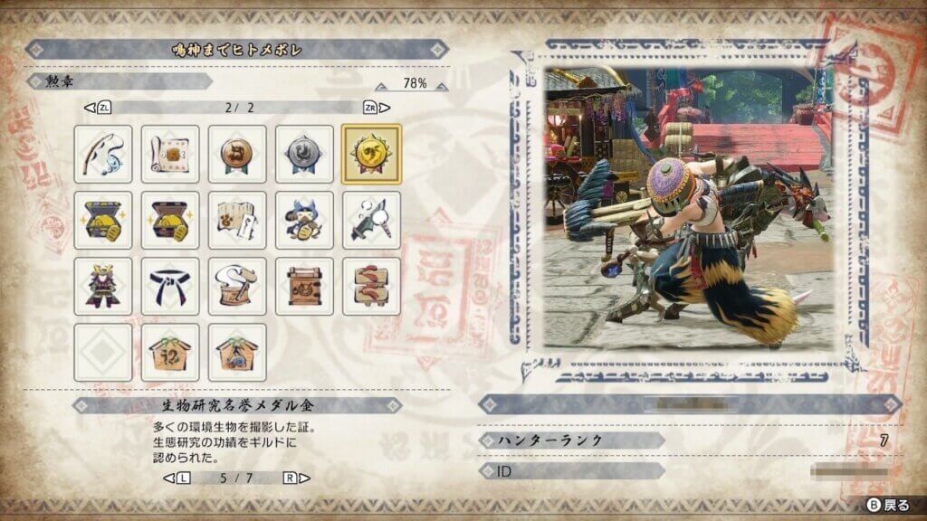 モンハンライズ において、クリア後の楽しみと言えば、勲章コンプリートですよね。