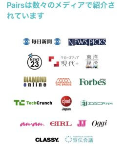 このようにPairs(ペアーズ)は多くのメディアで紹介されており、掲載実績を積んでいます。