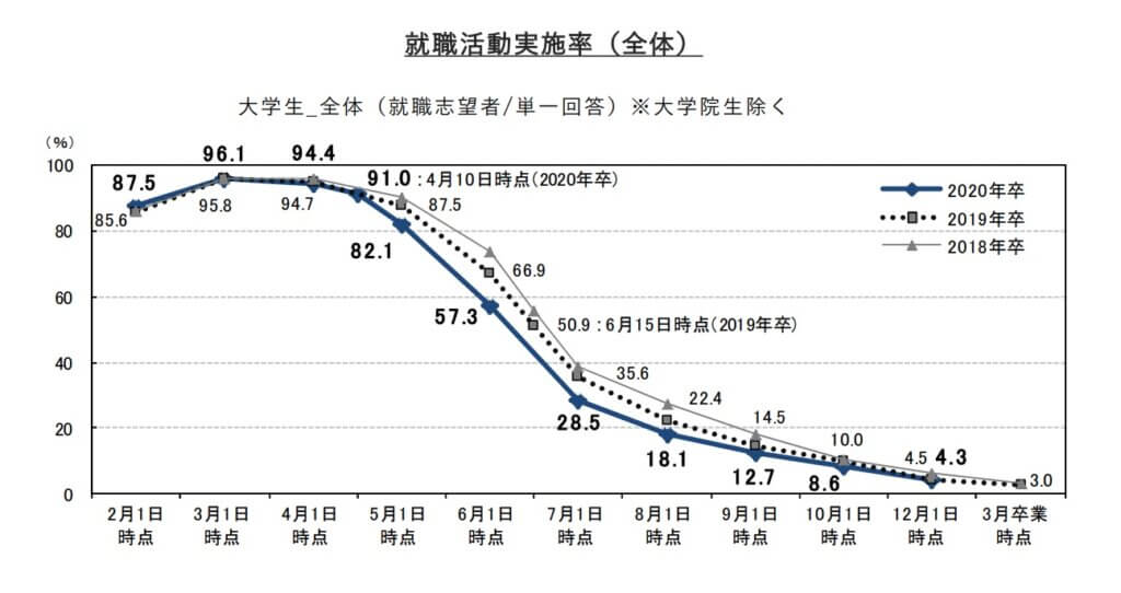 まさかの面接解禁日である6月1日の時点で、57.3%の学生しか就活を行なっていません。