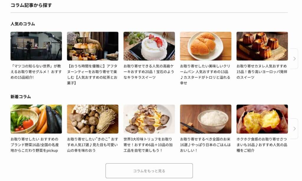 また上の画像にあるように、「人気のコラム」や「新着コラム」が用意されています。