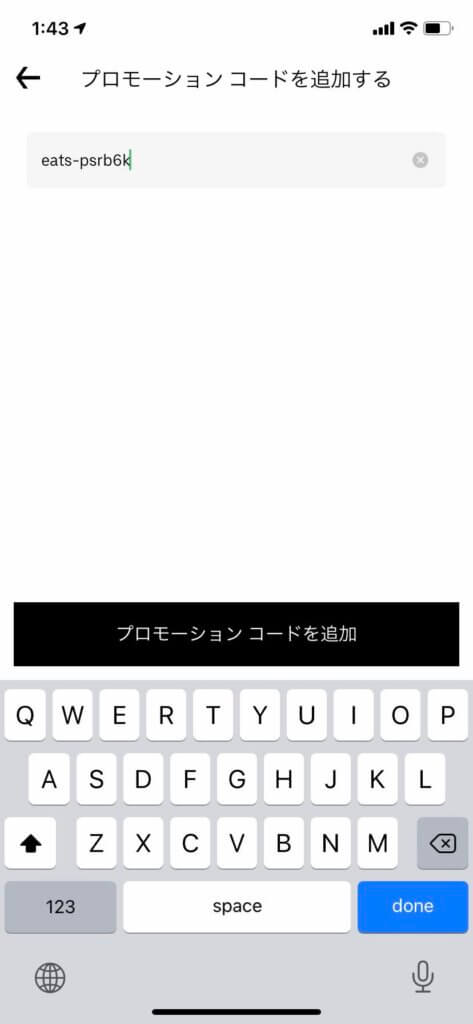 先ほどコピーしたコードを貼り付けて、「プロモーションコードを追加」を押せば完了です。