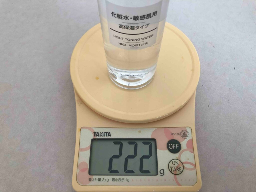 使いかけの無印良品の化粧水は222gでした。