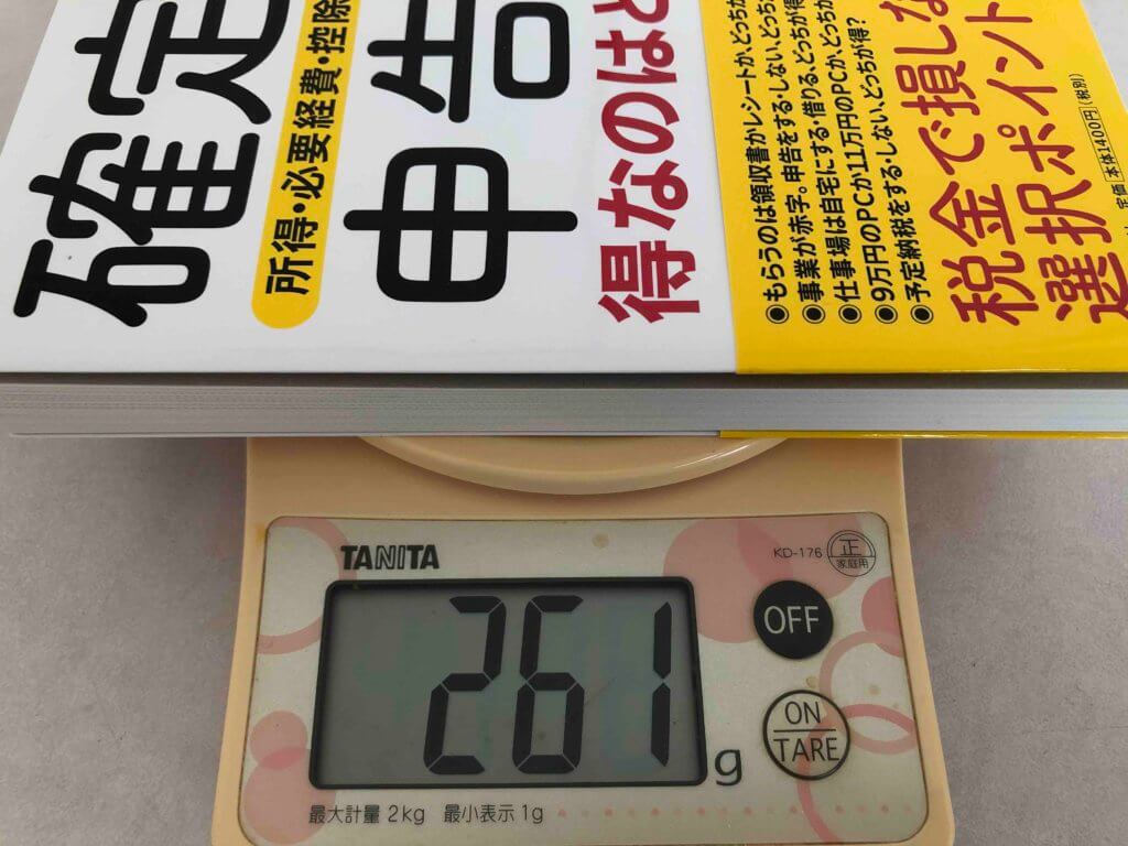 一般的な大きさの本を測ってみたところ261gでした。