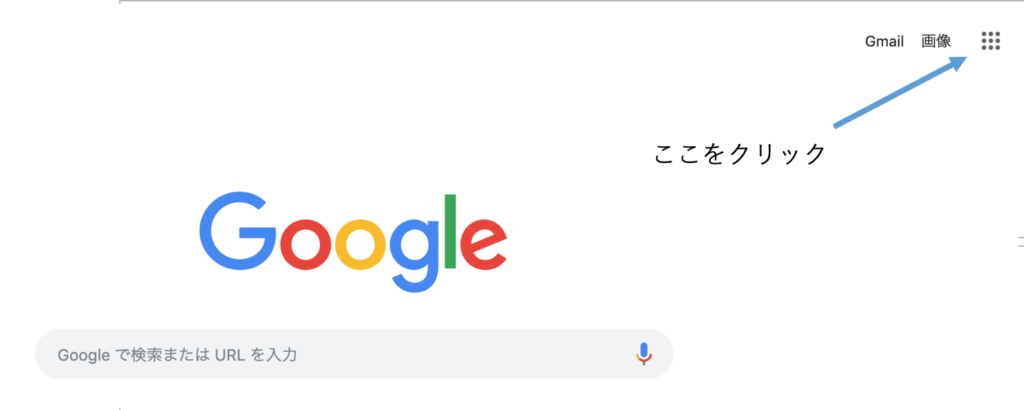 まずGoogleを開いて、右上の点の集まりみたいなところをクリックします。
