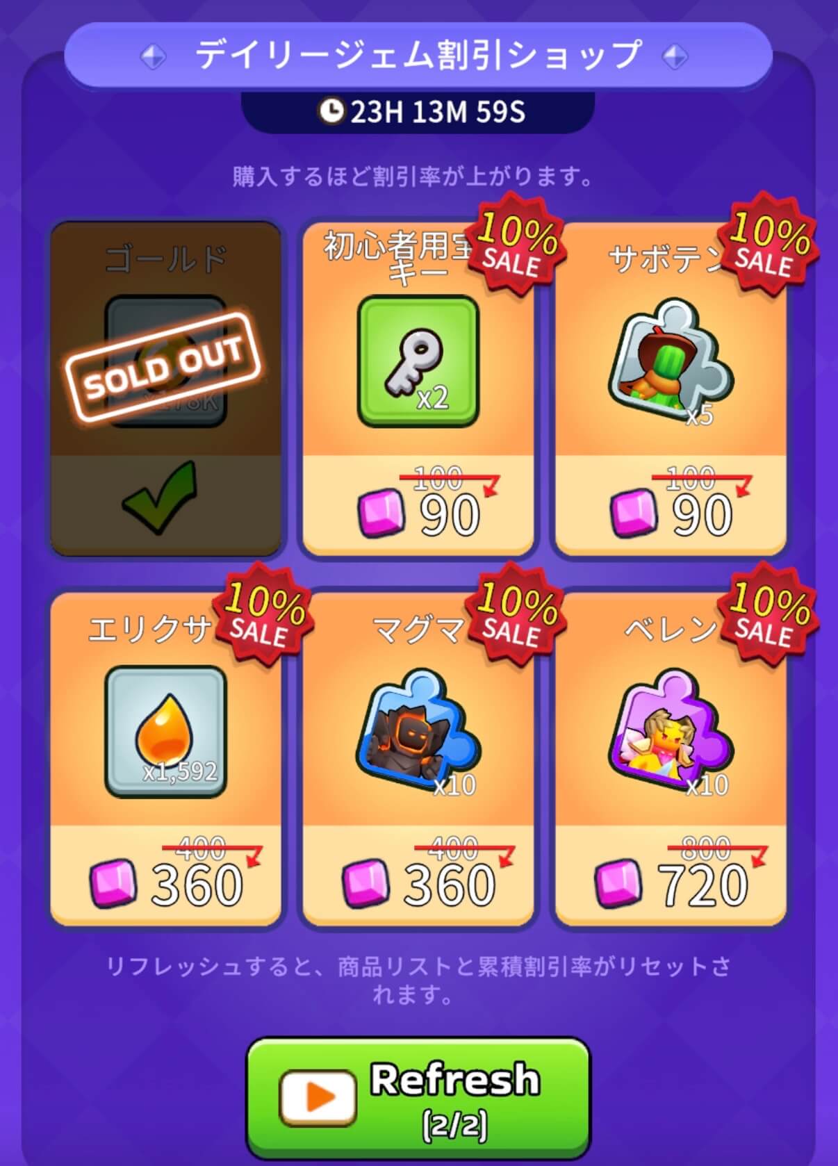広告視聴することで、1日最大5回まで挑戦チケットを入手できるので、必ずやりましょう。