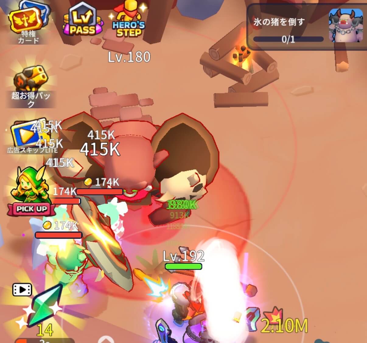 ミッションは面倒だから後回しにしている方は、武器や英雄レベルを上て強くなってきたなと思ったら、ミッションクリアのために倒す敵を狙いに行ってみましょう。